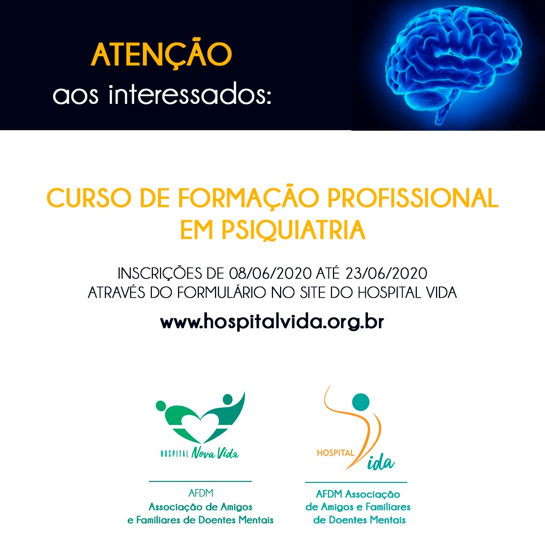 Os candidatos interessados em participar da seleção para as sete vagas do Curso de Formação Profissional em Psiquiatria do Hospital Vida deverão realizar suas inscrições através do formulário de inscrição no site da Instituição (www.hospitalvida.org.br) no período de 08 de junho de 2020 a 23 de junho de 2020.