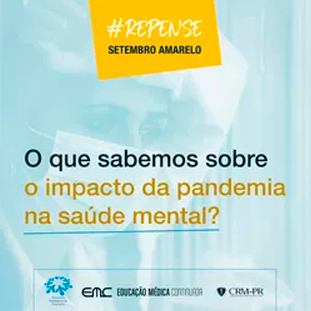 Associação Paranaense de Psiquiatria (APPSIQ), e o Conselho Regional de Medicina do Paraná (CRM-PR), convidam todos os médicos, estudantes de Medicina e demais interessados para a palestra que será realizada na quinta-feira, dia 3 de setembro, das 19h às 20h30, com o tema: "O que sabemos sobre o impacto da pandemia na saúde mental?."