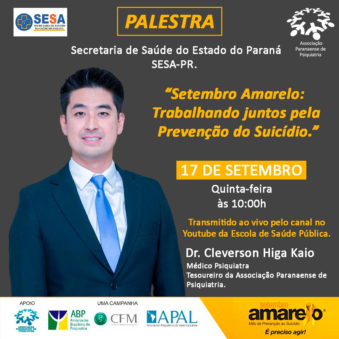 Em parceria com a Secretaria de Saúde do Estado do Paraná - SESA , a Associação Paranaense de Psiquiatria - APPSIQ, representada pelo Dr. Cleverson Higa Kaio, irá ministrar palestra sobre: