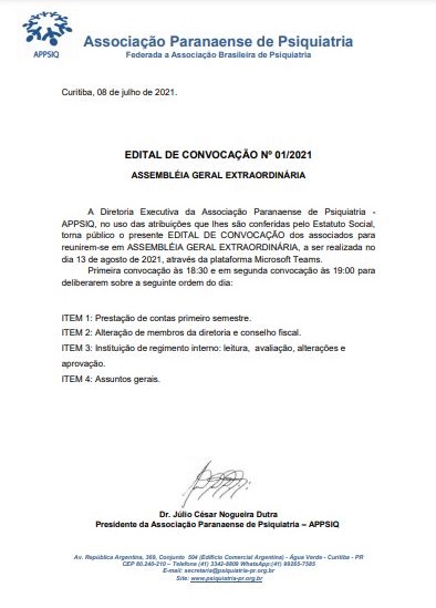 CONVOCAÇÃO ASSEMBLEIA EXTRAORDINÁRIA