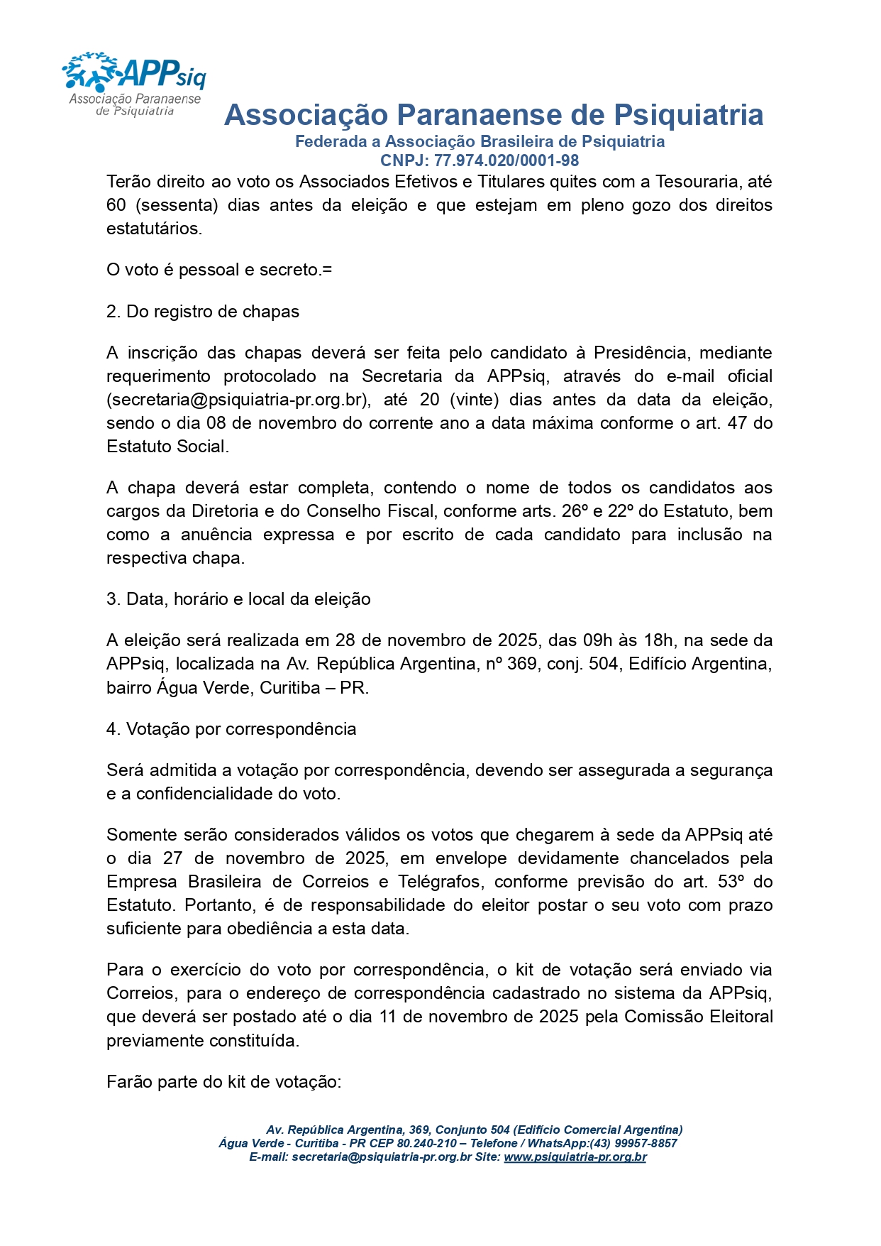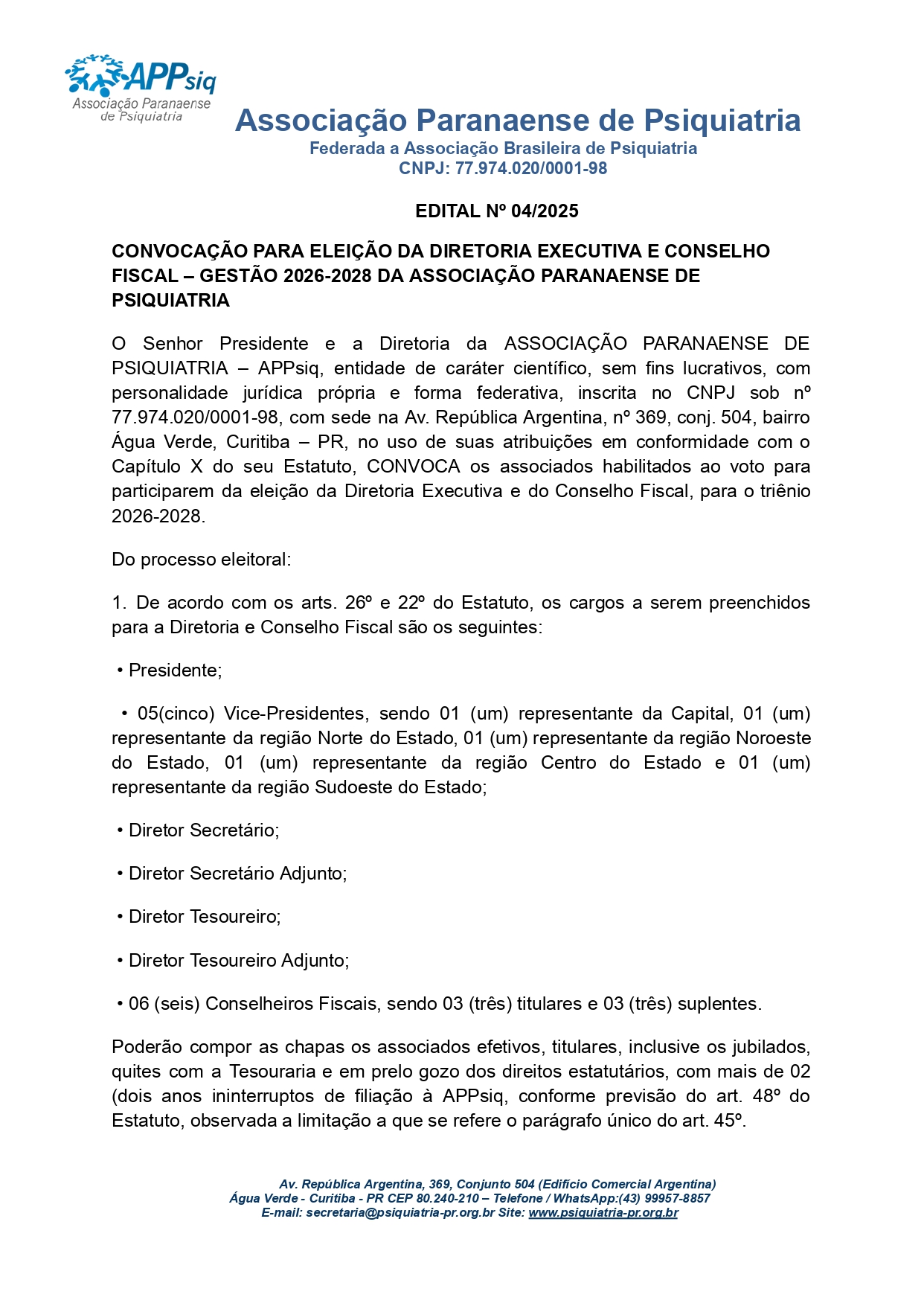 Edital de Eleição da Nova Diretoria e Conselho Fiscal 2026-2028