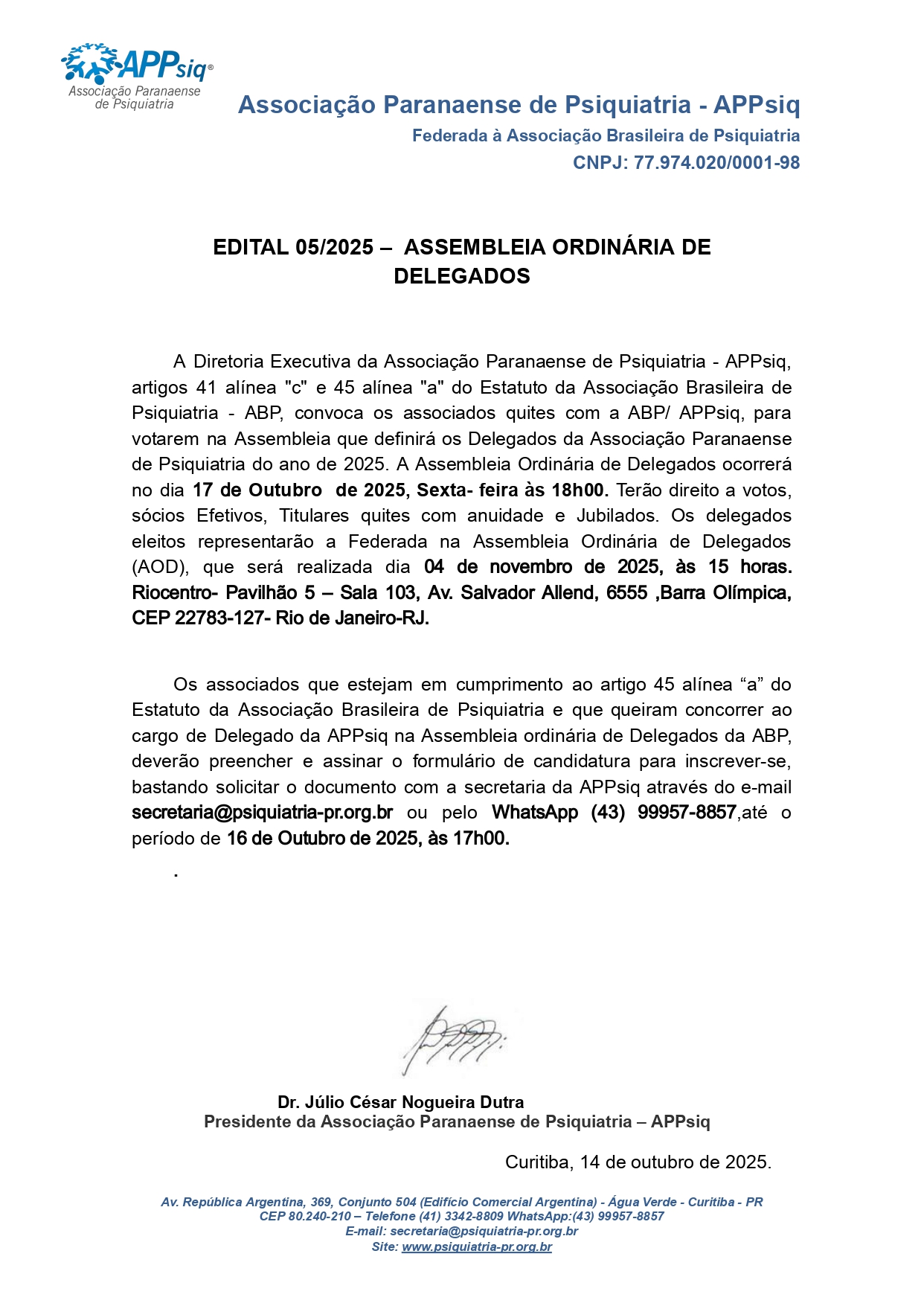 ACESSE O LINK PARA PARTICIPAR DA ASSEMBLEIA DE DELEGADOS A PARTIR DAS 18H00 DO DIA 17/10/2025