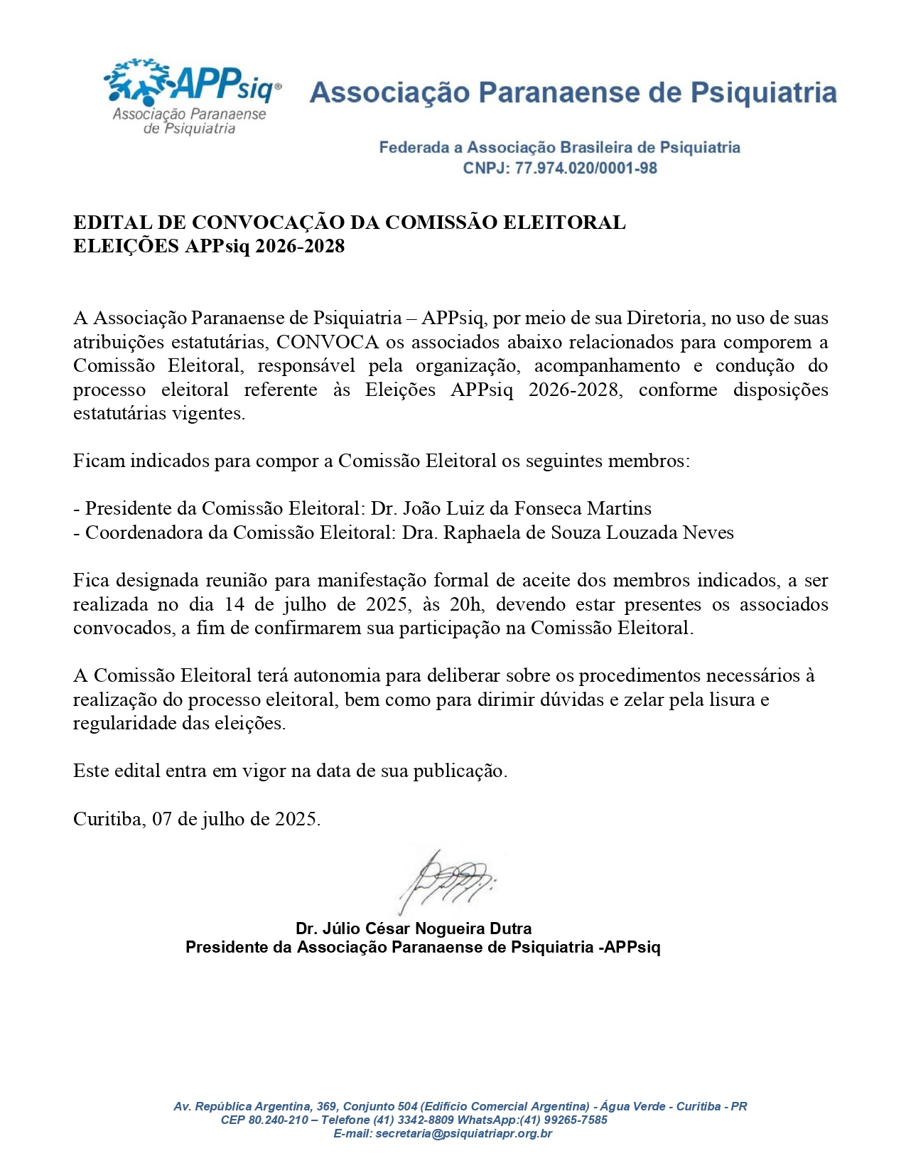 EDITAL DE CONVOCAÇÃO DA COMISSÃO ELEITORAL
